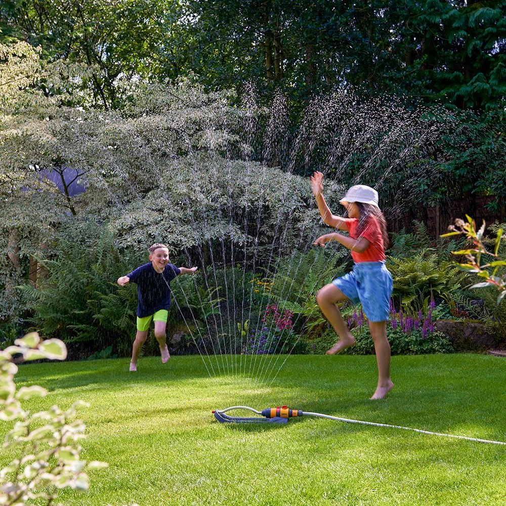 The Hozelock Rectangular Sprinkler Plus 220 Sqm covers an area of 220 Sqm and has water driven sprinklers which oscillate forwards and backwards giving even coverage across the area. The water bar can be set to water a full rectangle shape or use the setting rings to decide what angle you would like watered. Great for lawns or large flower beds and borders.
